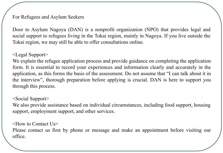 WhatsApp (+81-70-5444-1725)では、母国語でのメッセージを受け付けています。