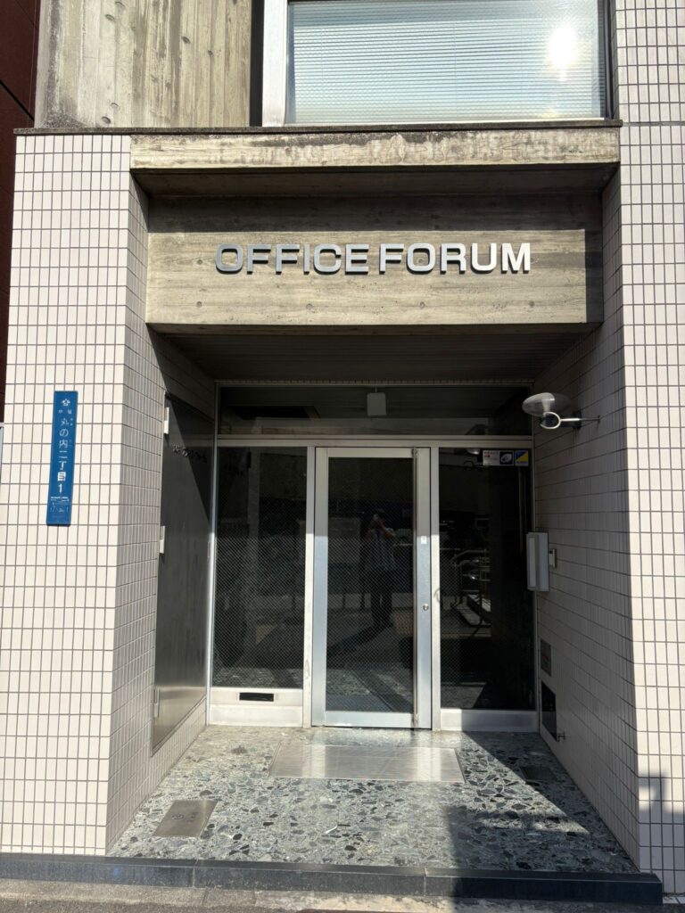 "OFFICE FORUM" is written above the grey entrance of the building.